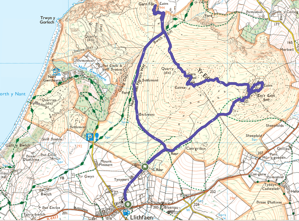 Includes the three peaks of the Eifl: Tre'r Ceiri, Garn Ganol and Garn Fôr